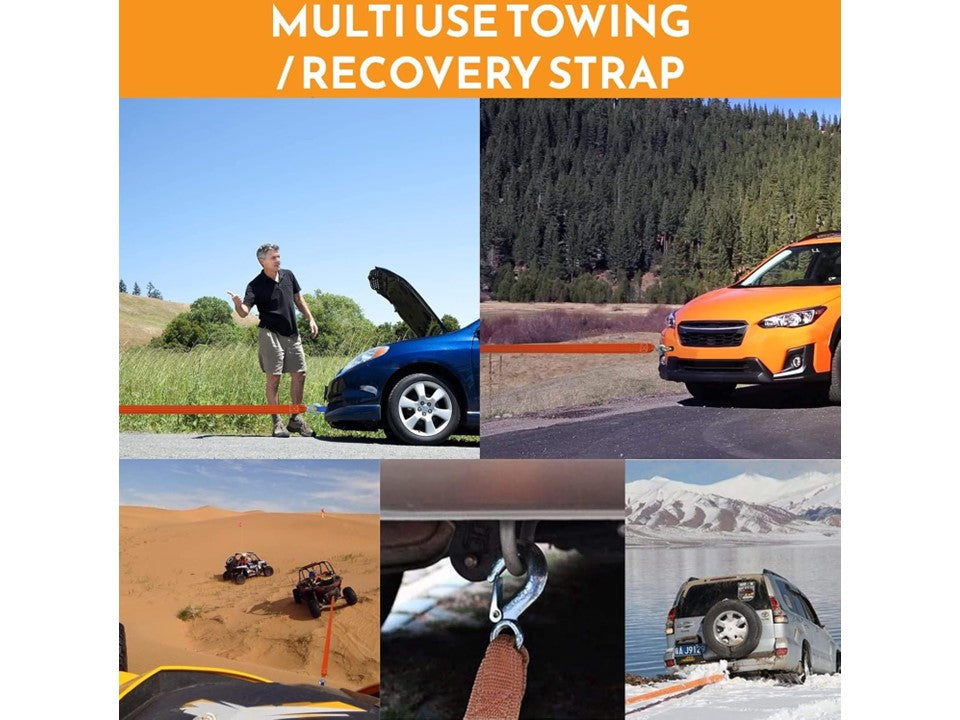 Correa de sujeción con ganchos de seguridad en ambos extremos de la cuerda. Ideal para remolques de vehículos, cargamentos pesados, grúas, sujeción de todo tipo de bultos, cargas, equipajes y otros elementos en camiones, furgonetas, bacas de coche.